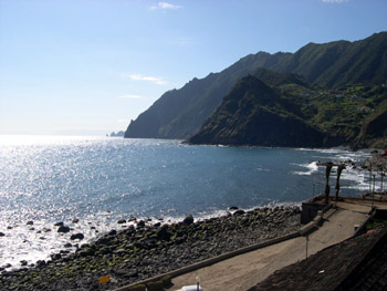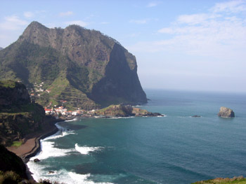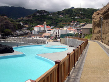 Blick auf den Adlerfelsen | Schwimmbad in Porto da Cruz | Schwarzer Strand im Ort |