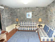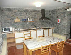 Sowohl Küche, als auch Wohnzimmer sind im traditionellen Naturstein belassen. Das Haus verströmt eine rustikal gemütliche Atmosphäre. |