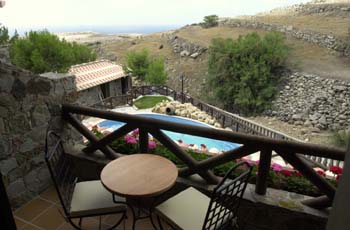 über die Bucht auf das Meer - der hauseigene Pool sowie der